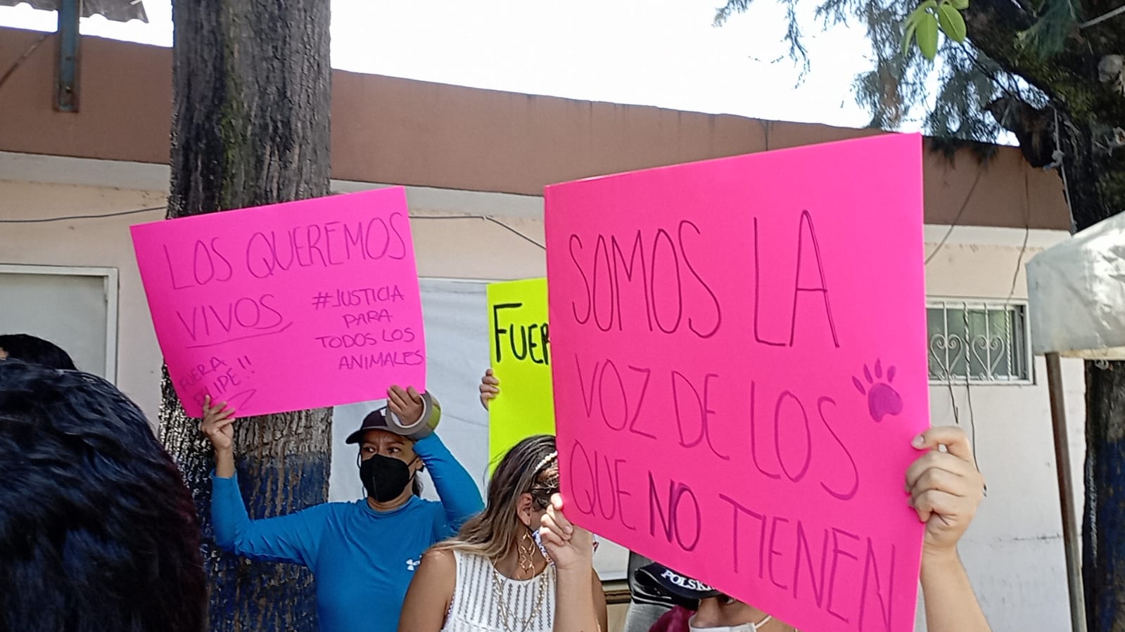 Celaya, Guanajuato. – Asociaciones en defensa de los animales se manifestaron en el Centro de Control Animal para exigir que el director Felipe López sea destituido debido a no estar cumpliendo con los lineamientos de los derechos fundamentales al respeto de la vida de lxs animales luego de haber sacrificado un perrito que fue denunciado como violento.