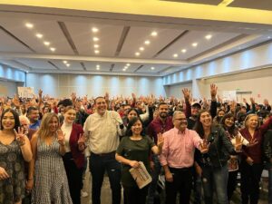 Celaya, Guanajuato. –   La cita fue en el hotel Inn de plaza Veleros, desde las once de la mañana jóvenes militantes del partido #Morena acudieron a la Asamblea Informativa sobre el trabajo de Claudia Sheinbaum en la capital mexicana, al finalizar la reunión corearon en grupo #Presidenta #Presidenta.